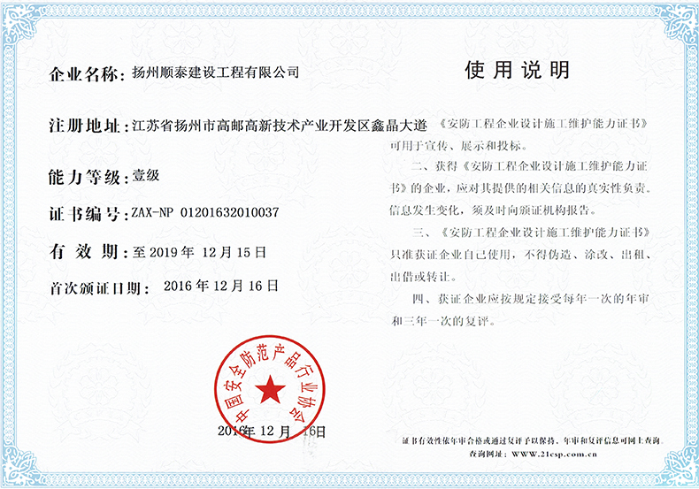 安防工程企業(yè)設計施工證書(shū)-順泰交通